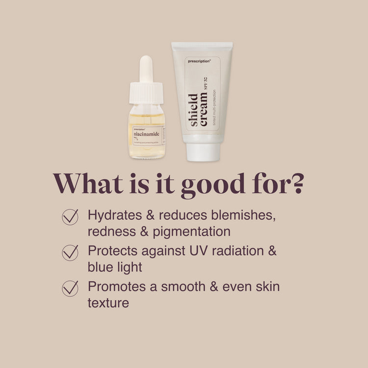 Für ultimativen Schutz tragen Sie einfach 3 Tropfen Niacinamid und danach die Shield Cream LSF30 auf.