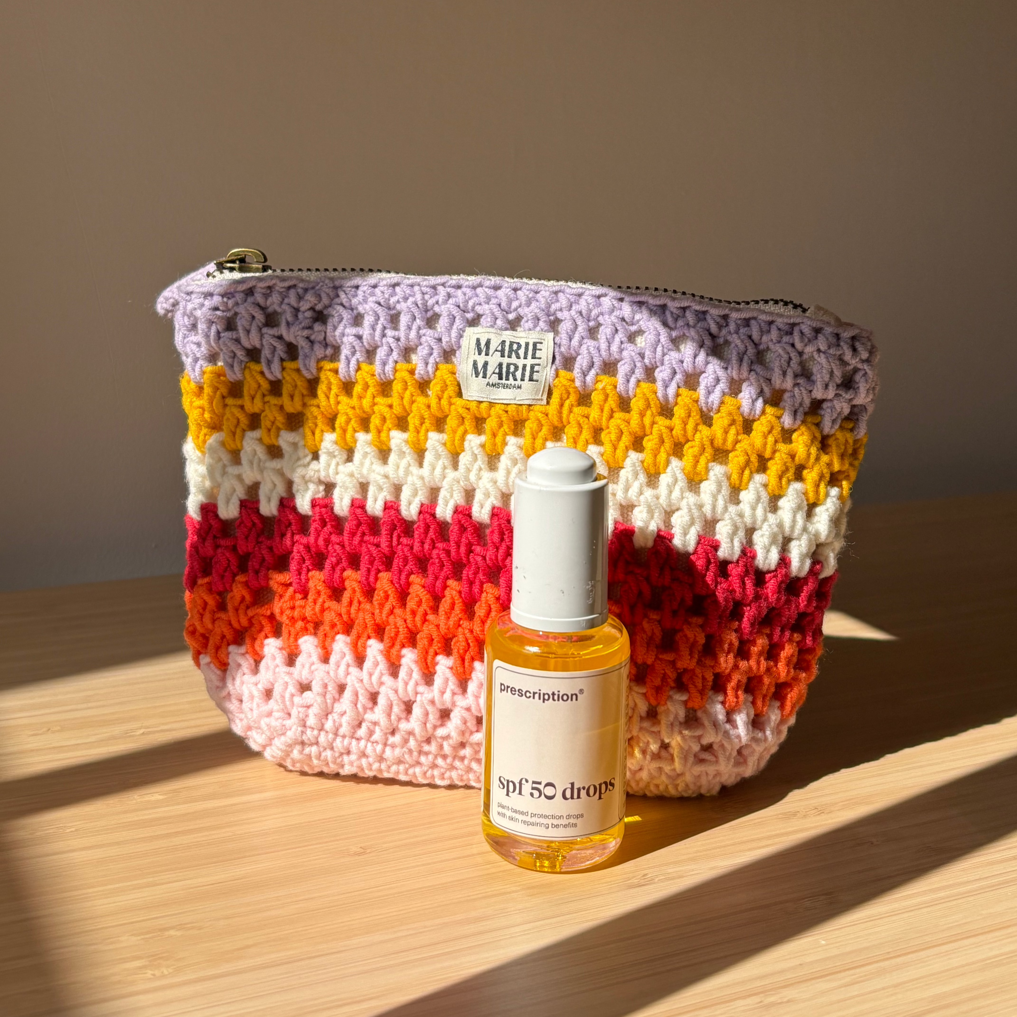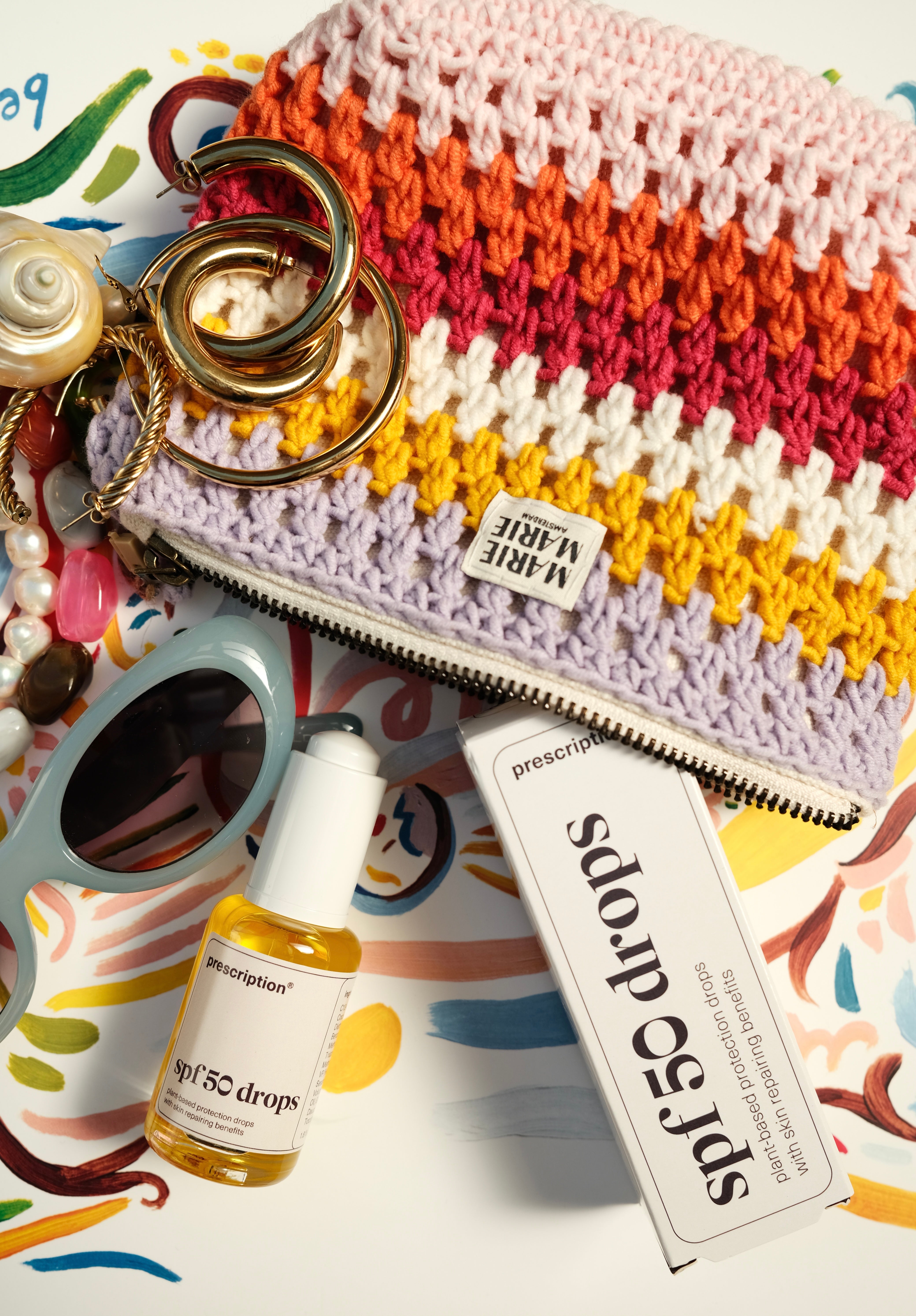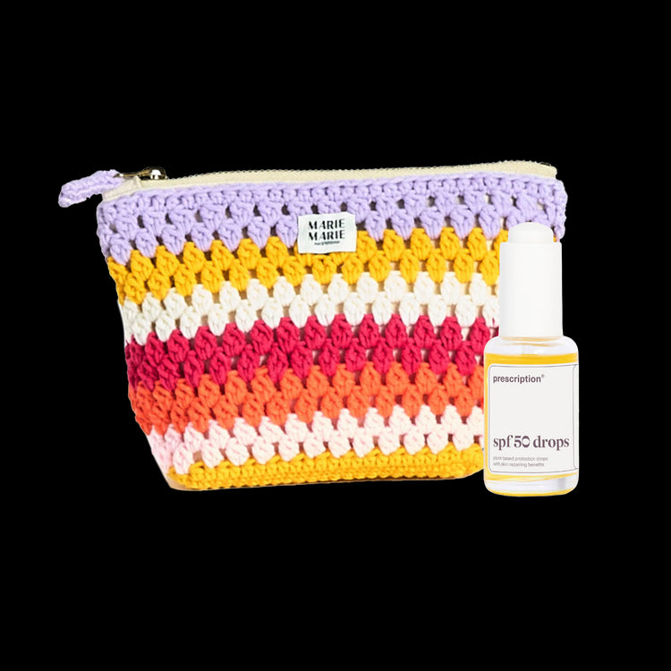 Prescription Skincare x MARIE MARIE präsentieren ein limitiertes Sommer-Essentials-Set. Eine Zusammenarbeit, die Frauen durch das Handwerk des Häkelns und der personalisierten Hautpflege verbindet. Dieses Set enthält alles, was Sie brauchen, um stilvoll in die Sonne zu gehen - und das gut geschützt.