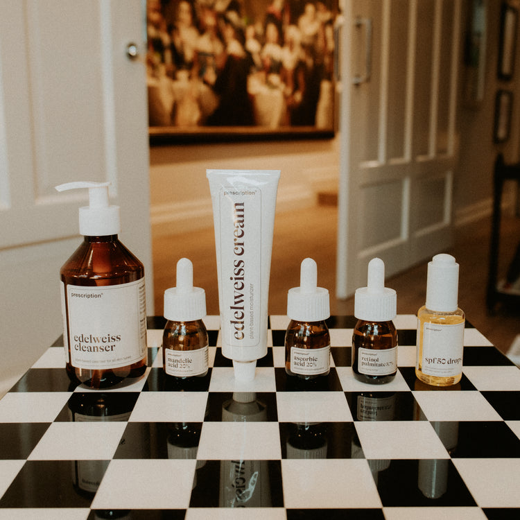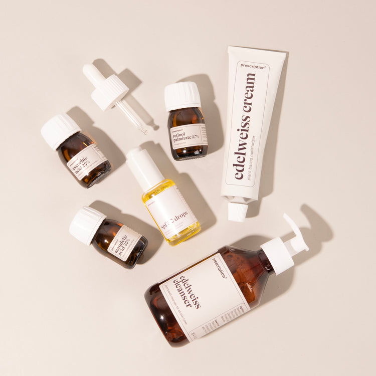 Edelweiss cleanser + mandelic acid20% + Edelweiss cream + ascorbic acid20% + retinol3.75% + spf50 drops